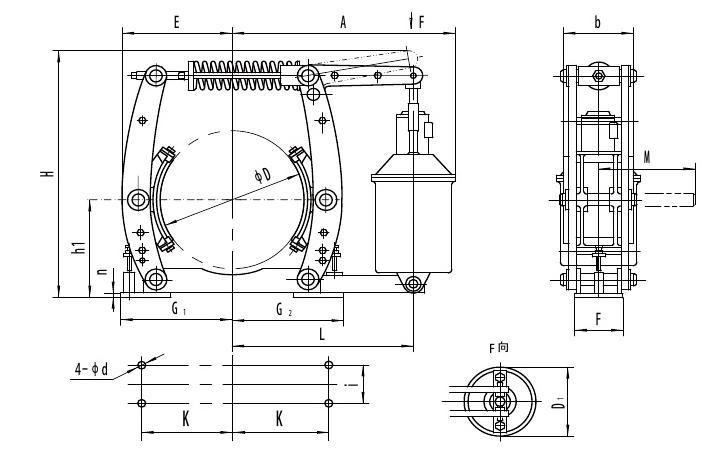▲ 常閉式設計,(斷電)彈簧制動,(通電)推動器釋放。